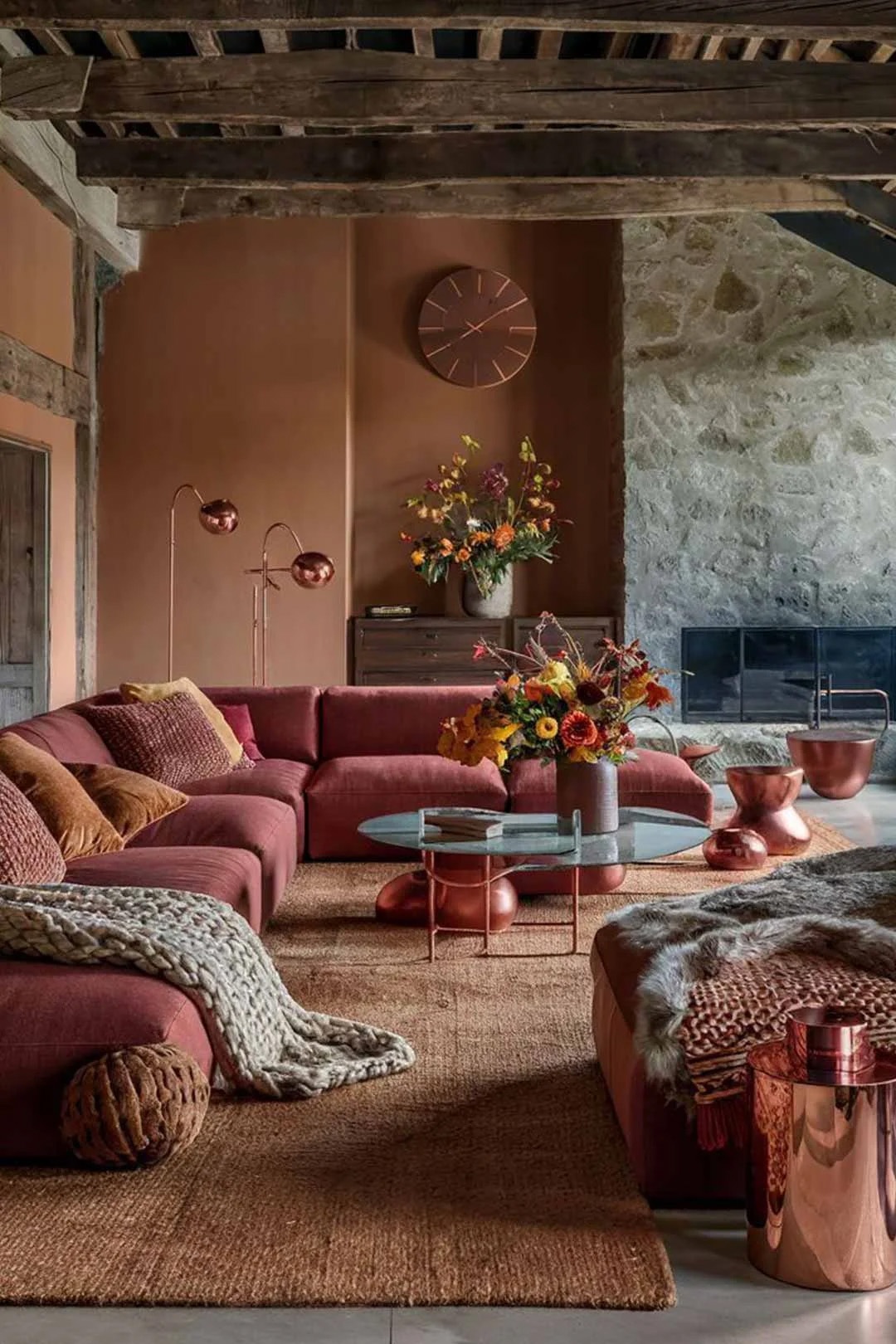 Etter flere år med rene, minimalistiske uttrykk søker vi nå mot dypere, tryggere fargetoner. Terrakotta, karamell, burgunder og mørk grønn gir rommene en følelse av ro og forankring. Samtidig spiller mykere nyanser som beige, mocha mousse og dusty pink en viktig rolle, enten alene eller som kontrast til de rikere tonene.