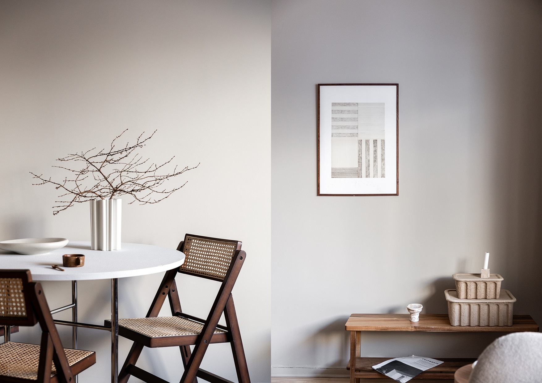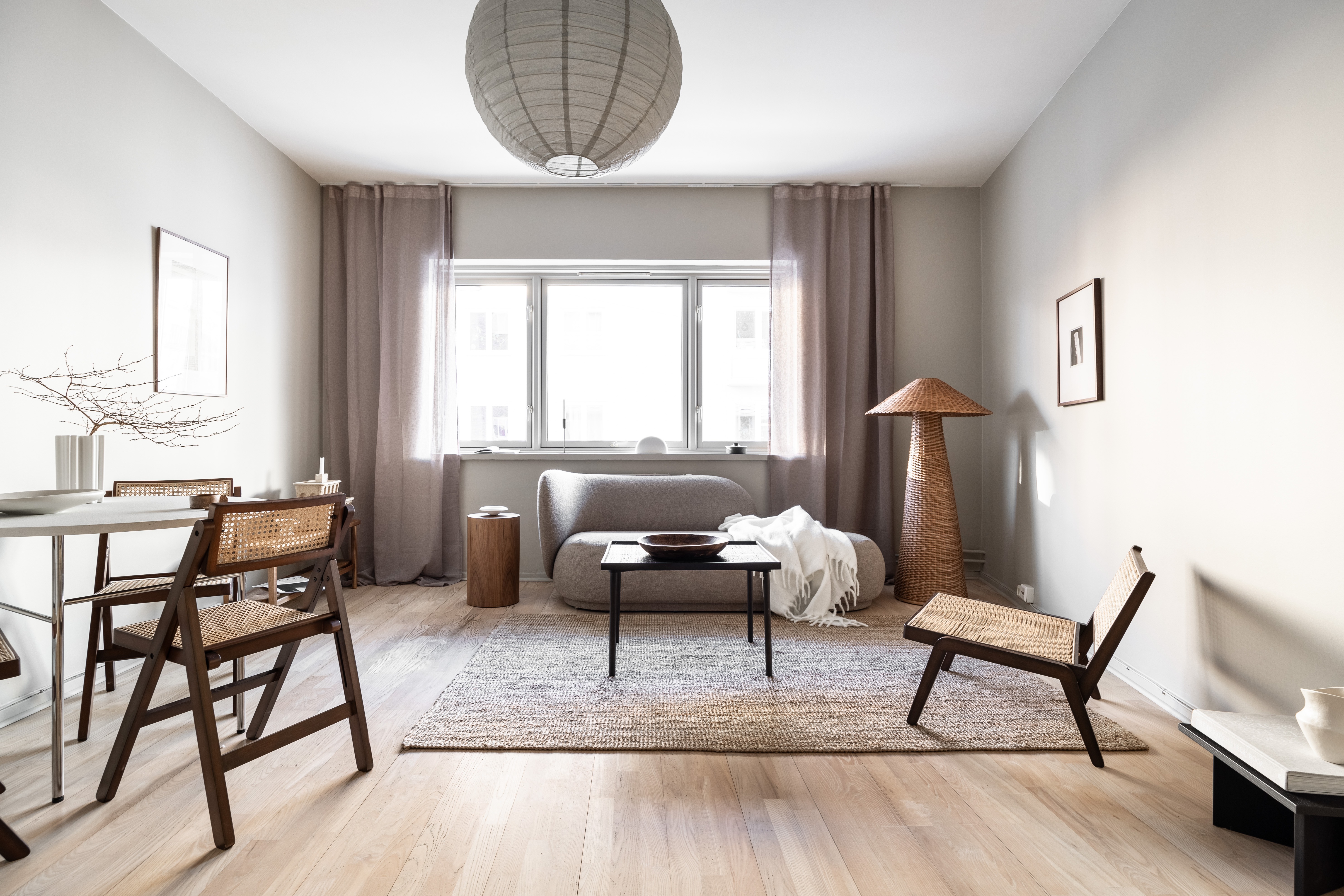 "Gjør små grep som gir en stor og tydelig effekt. I Jens Bjelkes gate 82E valgte vi å male hele leiligheten i lyse toner som står i stil til hverandre. Når man fargesetter en hel leilighet, er det viktig å sette sammen de riktige fargene. Vi gav også kjøkkenfrontene ett løft med maling. Takbelysning er også viktig. Her brukte vi store runde former som gir det lille ekstra, men som samtidig er lette i uttrykket. Gardiner gir tekstur og mykner rommet. Trikset er å henge gardinene helt fra taket og ved siden av vinduene. Da vil rommet virke større. Med gardiner får man i tillegg en lun følelse."